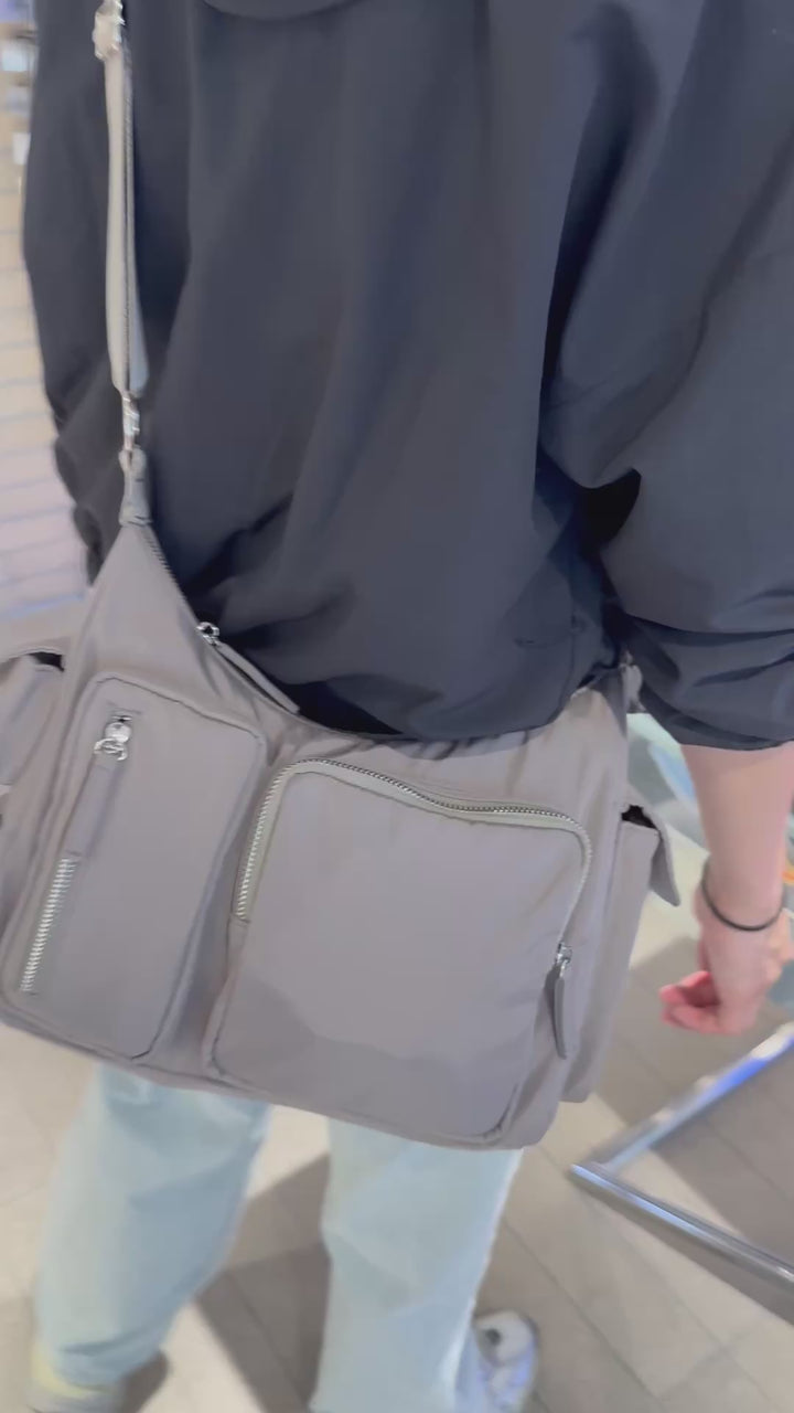 小さいけどよく使うものを小分けに収納できます。外側の縦ポケットにはモバイルバッテリーやパスケースなど収納できる便利なサイズを追求しました。 お買い物用のエコバッグもサッと取り出せる外側ポケットに収納出来ちゃいます。一度使ったら離れられないお勧めのバッグです♪